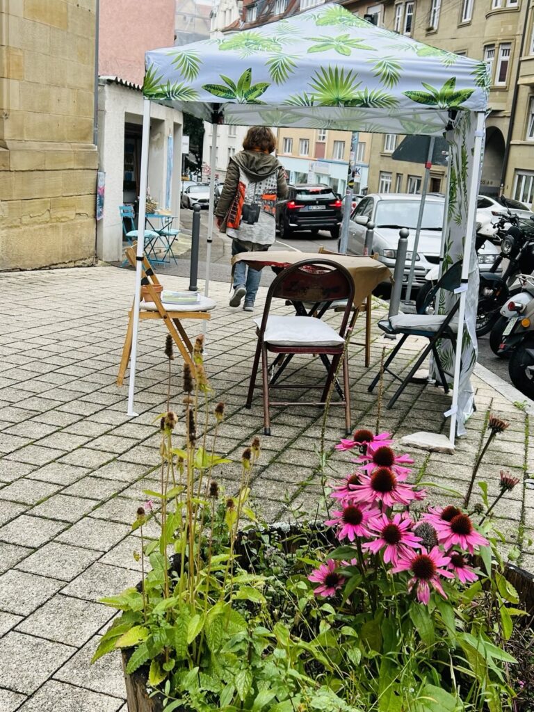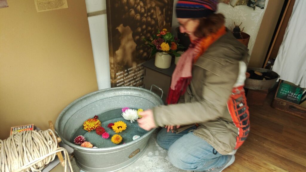 Flower Power: Das war das Motto der Entdeckungsreise durch den Stuttgarter Westen zu Kunst, Design und Kunsthandwerk am 26. und 27. September 2025. Auch in Maries guter Stube am Traubenplätzle (Trauben-/Ecke Schwabstr.) waren die Power Flowers los! Rund 100 Entdeckungsfreudige besuchten das kleine Garagenmuseum. Neben Geschichten aus dem Stuttgarter Westen lockten ein Duftquiz mit blütenzartem Gewinn und Zauberblumen zum selbst basteln.
